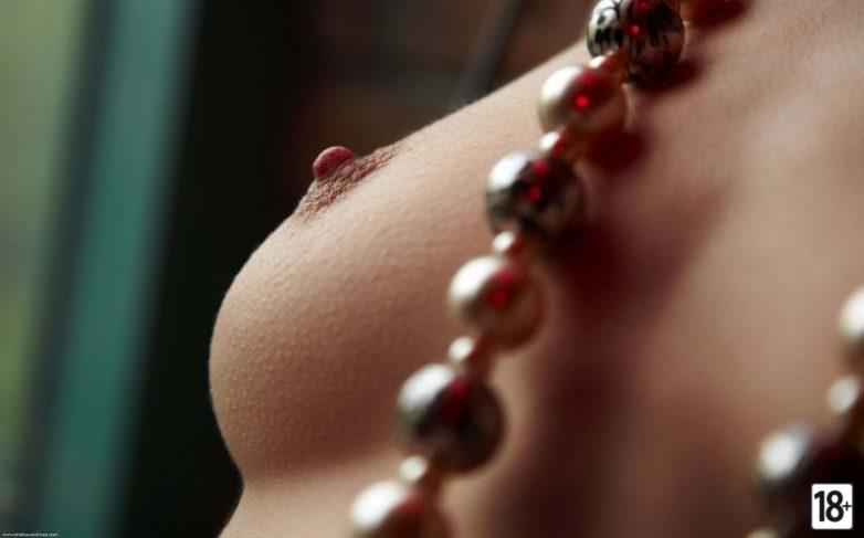 Голая брюнетка не просто хвастается ожерельем — она намеренно цепляет его на сосок, чтоб сразу было видно, куда смотреть 👀 А всё остальное? Ну, это уже детали на её горячих фото… 😏🔥