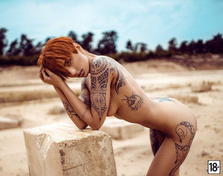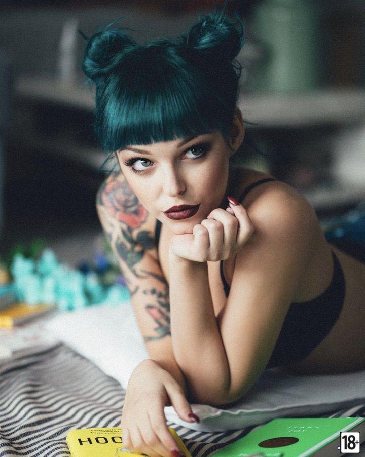 О, как же мне нравятся эти фото — синие татуировки, будто растекаются по горячим телам, обозначая каждый изгиб, каждую складочку между бёдер и ниже... Девки словно вылиты из огня, с этими узорами на лопатках, животах и там, где особенно приятно царапать ногтями. Фото будто кричат: «Трогай, лизни, размажь синеву до самого рассвета».