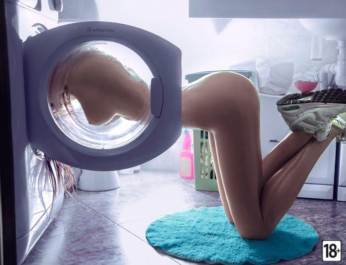 Эти фото просто жгут — она в стиралке, вся мокрая, с попой, что хочется прикусить, и сиськами, от которых глаза разбегаются 😈💦 Настоящая стирка грехов, только глянь, как она извивается между барабаном и своей похотью 🍑🔥 Аж самому хочется залезть туда, закрыть люк и включить отжим на полной мощности 😉