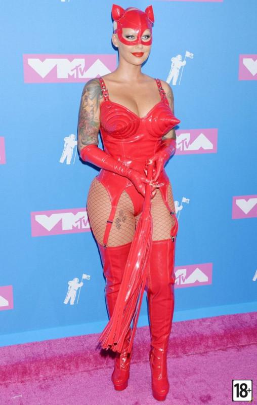 Эмбер Роуз как всегда на волне, хотя и выглядит не всегда того. Трёхдневная борода, огромная задница и улыбка, как будто она только что откусила кусок булки. На MTV она появилась в наряде, который больше походил на костюм из художественного фильма, чем на что-то, что можно носить на публике.